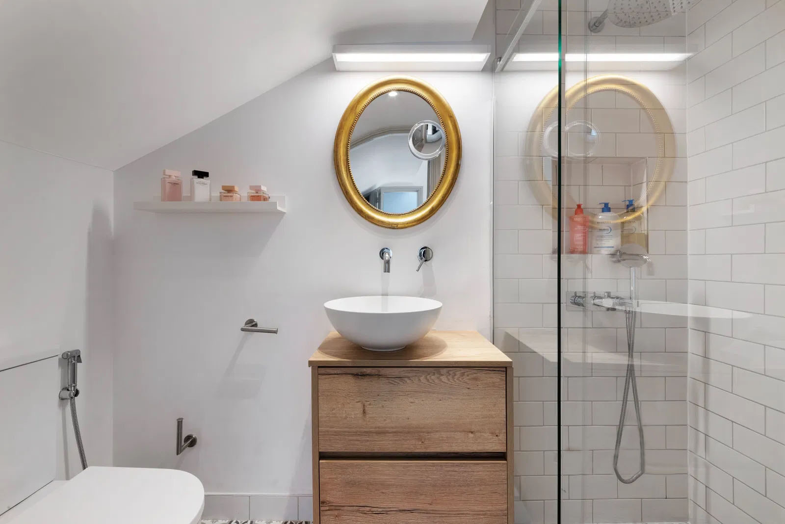 In the bathroom, dated fixtures were replaced with contemporary fittings, large-format tiles, and streamlined sanitaryware to create a spa-like atmosphere. Carefully considered lighting design — including recessed LEDs, feature pendants, and layered ambient lighting — elevates the mood from day to night.
