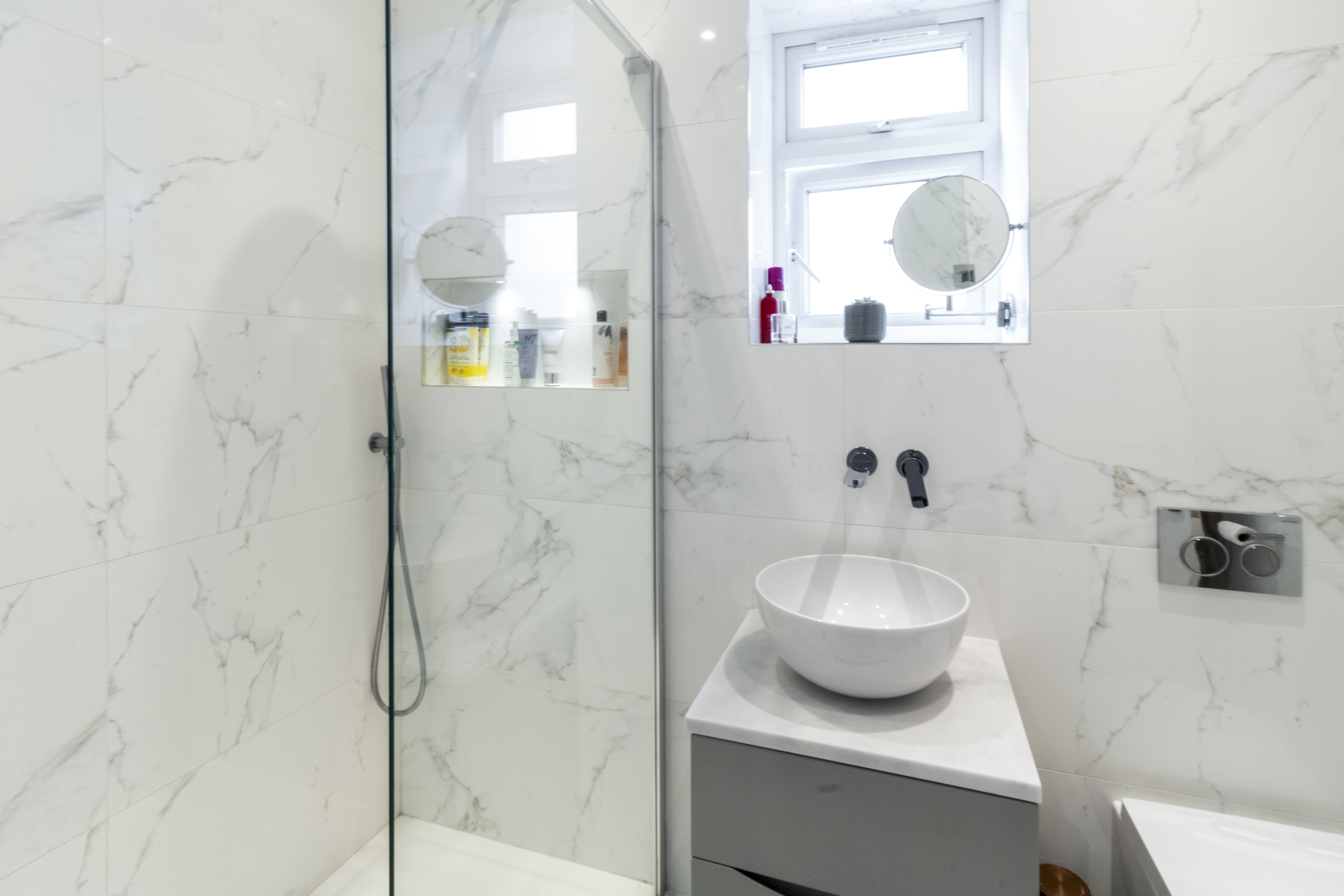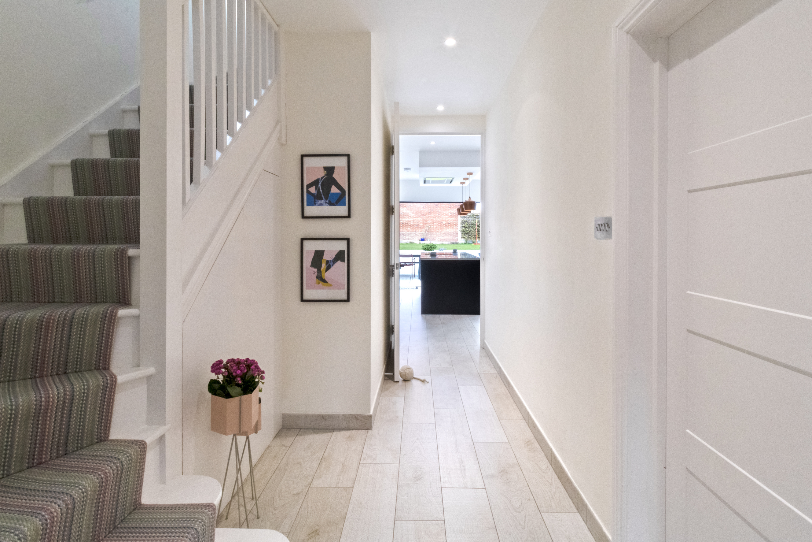 Alongside the structural works, the property underwent a full renovation. All electrics were replaced throughout, and a completely new plumbing and heating system was installed to modern standards. The ground floor benefits from underfloor heating beneath a tiled finish, delivering both comfort and a clean, contemporary aesthetic.
