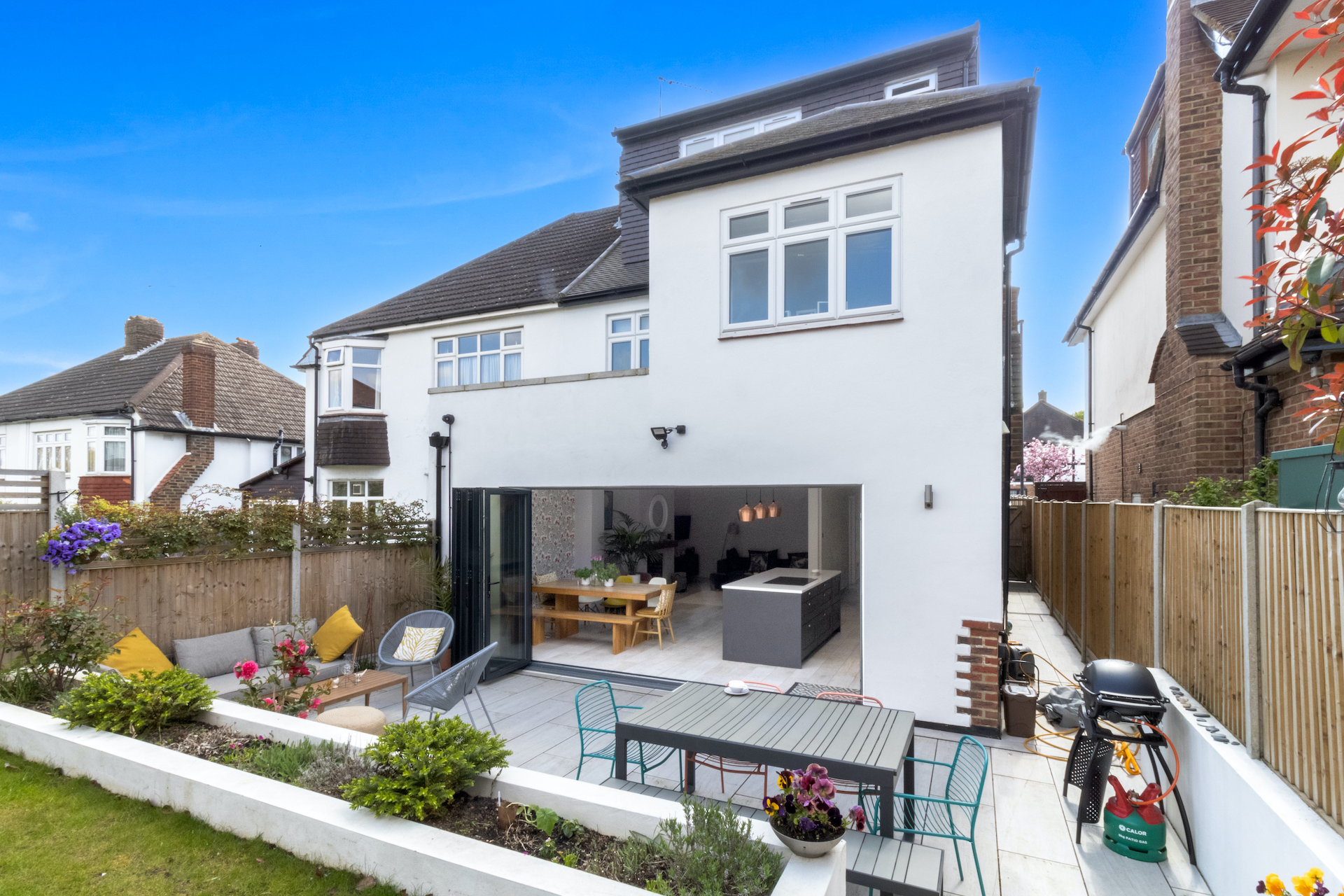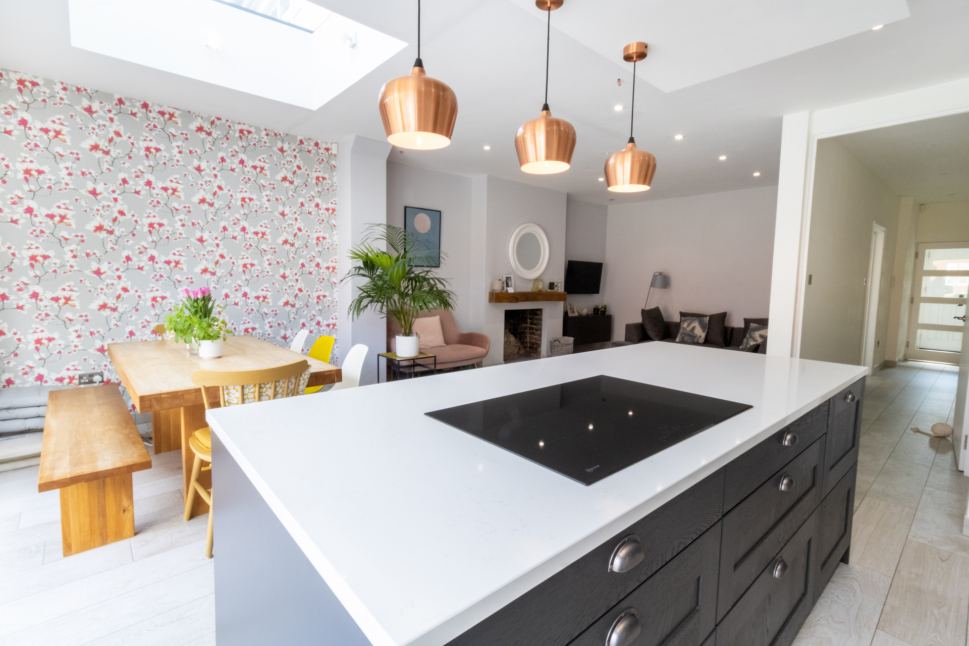 To the rear, a significant ground floor extension was added, dramatically increasing the footprint of the home and creating a bright, open-plan kitchen, dining, and living space designed for everyday family life and entertaining. Above, a half-width first floor extension provided additional bedroom accommodation along with a new en suite, enhancing both functionality and long-term flexibility.